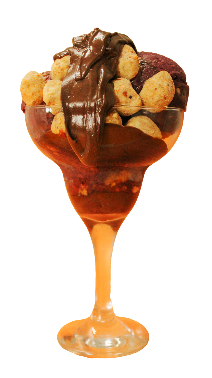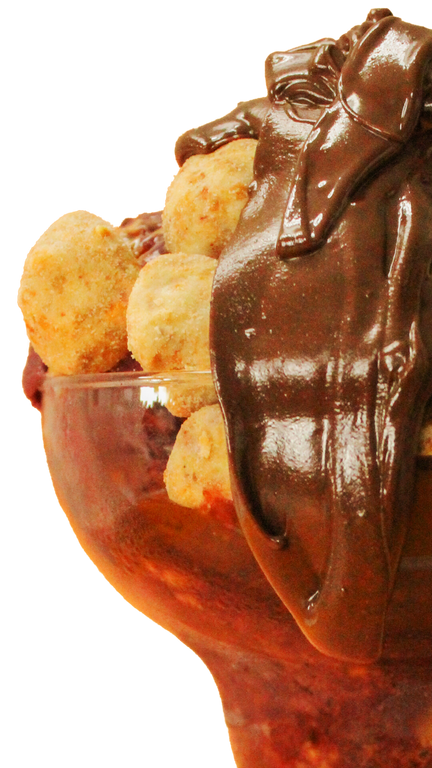 açaí com amendoim e pipoca de paçoca! E aquela ganache de chocolate pra ninguém botar defeito.